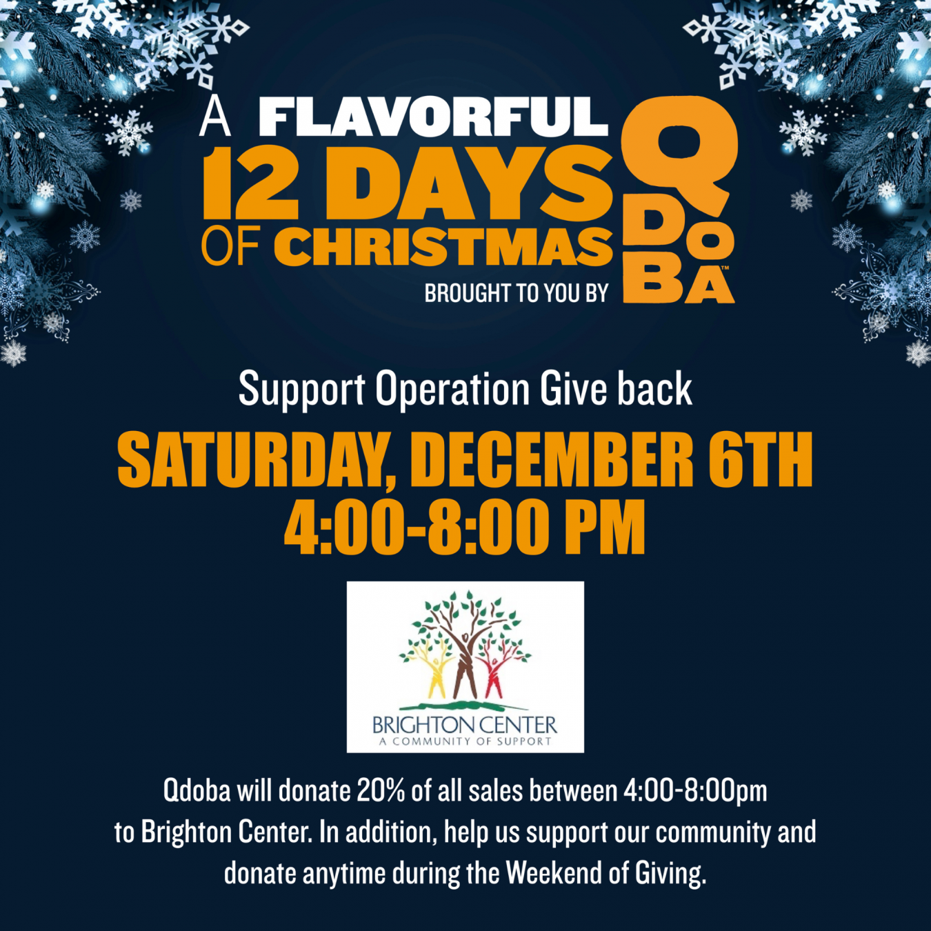 Support Brighton Center in a most delicious way! On Saturday, December 6th, Qdboa locations in Northern Kentucky and Greater Cincinnati will be donating 20% of all sales between 4:00 p.m. and 8:00 p.m. to Brighton Center.